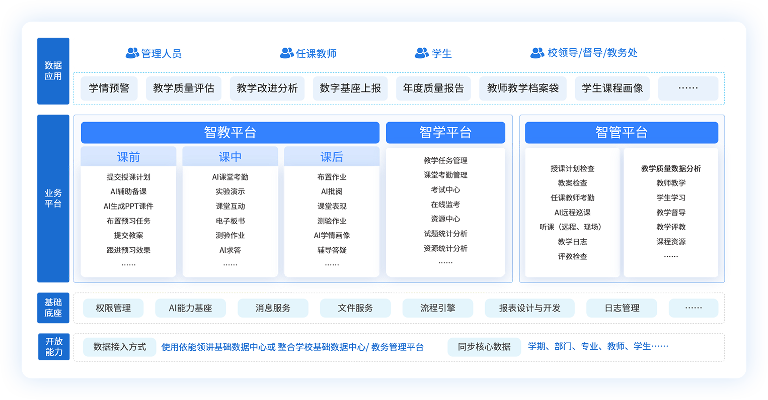 汇聚教师、学生、督导、评价、专业建设数据,以数据驱动教学质量持续提升。