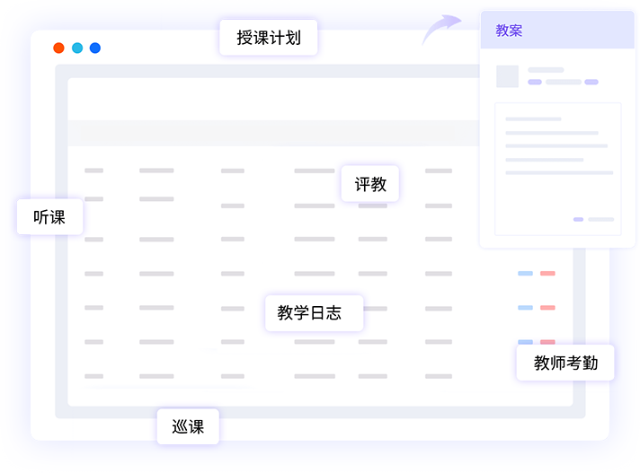 覆盖教师到岗、备课监督、教学进度、听课评课、巡课与预警等,流程透明可控。