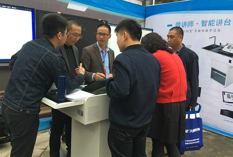 在校园影视教育成果展示区,依能展示了新一代健康、环保、无尘多媒体教室解决方案,该方案采用停电也能书写的液晶手写光能板,无尘、环保,智能讲台接入大屏显示设备,彻底告别传统黑板粉笔时代,使整个教室、教学设备及设施以及整栋教学楼干净整洁。该方案在现场受到众多参会嘉宾的关注,嘉宾们更是对依能创新研发的智能讲台表达了高度赞扬。