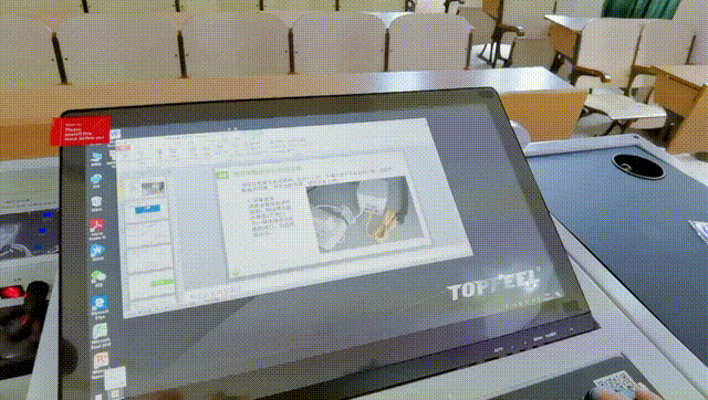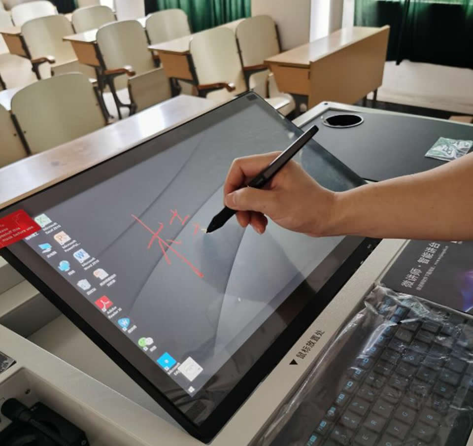 授课电脑屏幕可触屏控制,也可直接在屏幕上书写,还可手动调节书写屏角度,让不同身高老师的书写体验最佳: