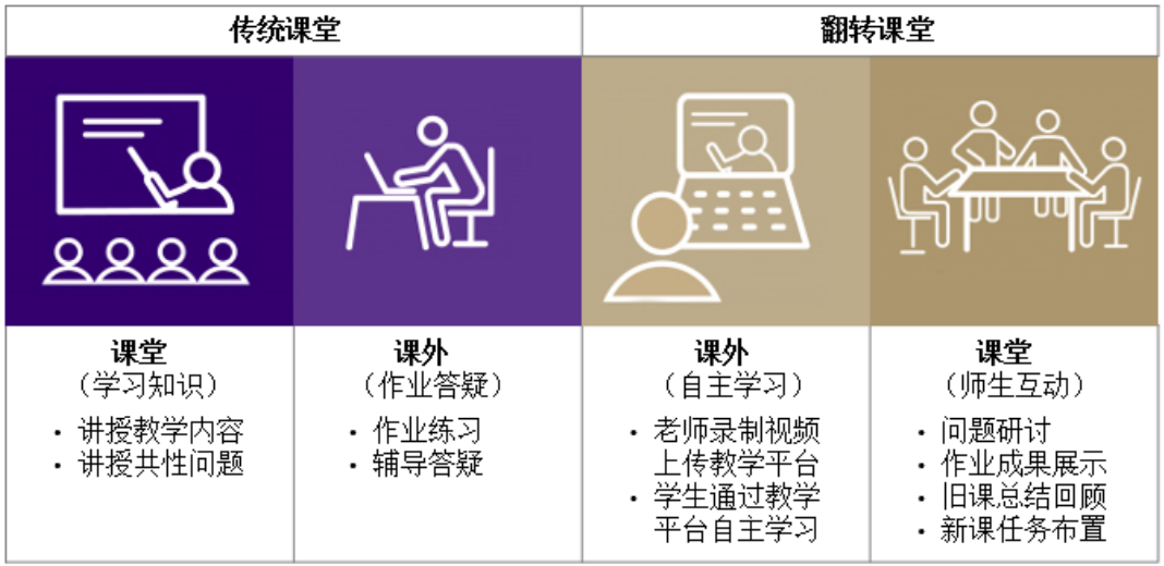 图 传统课堂与翻转课堂教学模式对比