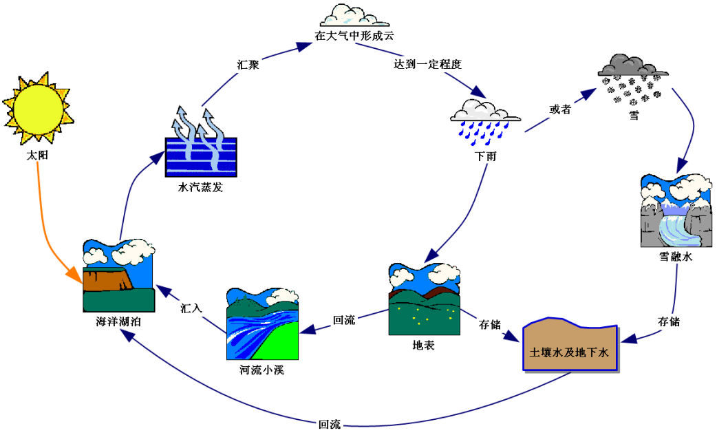图 地球上的水循环原理——用概念图比纯文字表达具有无可比拟的优势