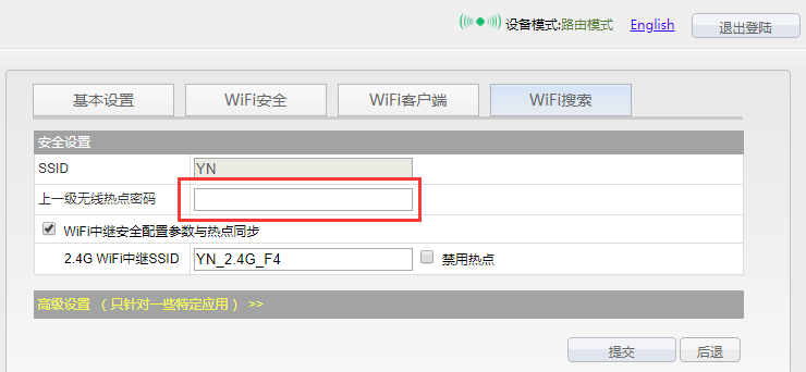 (3)输入连接上一级热点的密码,点击“提交”。