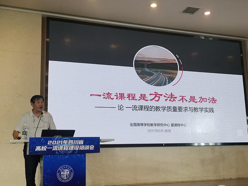 6月3日,2021年四川省一流课程建设培训会在西南交通大学峨眉校区顺利召开。本次会议由四川省高等教育学会指导、四川省高等教育学会课程建设研究专业委员会和四川省普通本科高等学校课程建设指导委员会主办、西南交通大学承办。培训会采取线上、线下方式组织,来自全国的十余位知名课程建设专家、四川省52所本科院校的主管教学副校长、教务处处长、一线教师等3000余人参加此次会议。