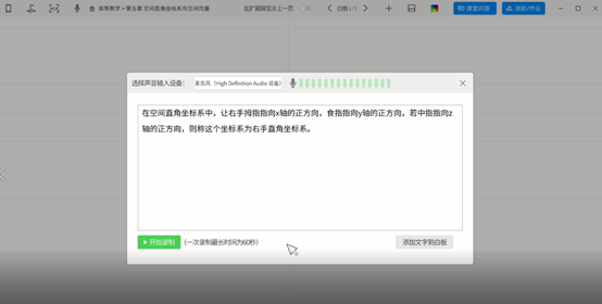 微讲师可将老师的授课语音转换为可编辑的文字并添加到白板,帮助老师免去文字录入的烦恼,从而快速构建教学内容。