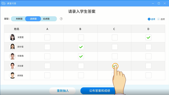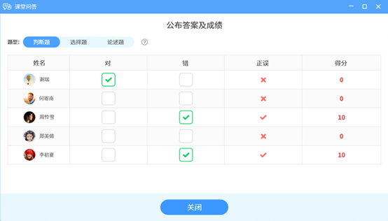 学生作答完成后老师就可以公布正确答案及相应的分值了。