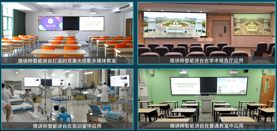 新一代多媒体教室以智能讲台为核心,搭配双大屏显示设备和液晶光能黑板使用。智能讲台集屏幕电子板书、课堂实录、课堂互动、无线麦克音响系统等功能为一体,适合全场景教室使用。