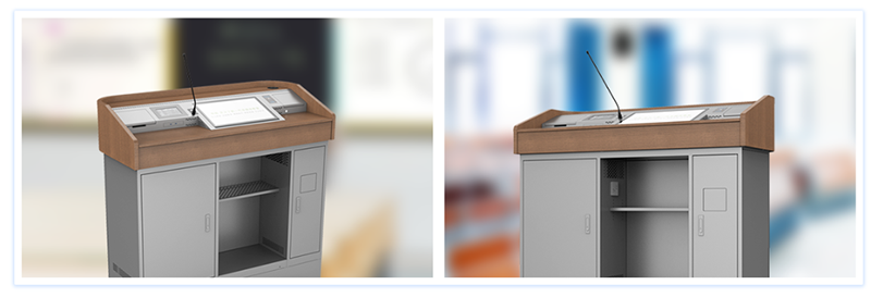 讲台内部集成功放和有源音箱,喇叭功率30W/声道,并精细优化麦克风品质、音频信号的采样频率及带宽参数,可满足100人合班教室授课使用,还原老师真实音质,声音平稳、清晰覆盖到教室每个角落,高品质的音响系统有效的减轻授课老师的疲劳感和提升学生听课的效果,久讲不累、久听不倦。