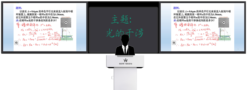 在微讲师智能讲台上精细书写,同步投屏到双大屏显示设备,可解决传统电子板书延迟高、精度差、近距离书写伤害眼睛等方面的不足。讲台的屏幕采用绘画级的书写屏,如同在纸张上书写一般,适合各种教学场景应用,尤其适合大篇幅理工科类推导演示书写,解决屏幕过大导致部分区域胳膊够不着所带来的书写不便等问题。板书时面对学生,学生不易开小差,师生之间有更多的眼神交流,教学过程也不容易中断。