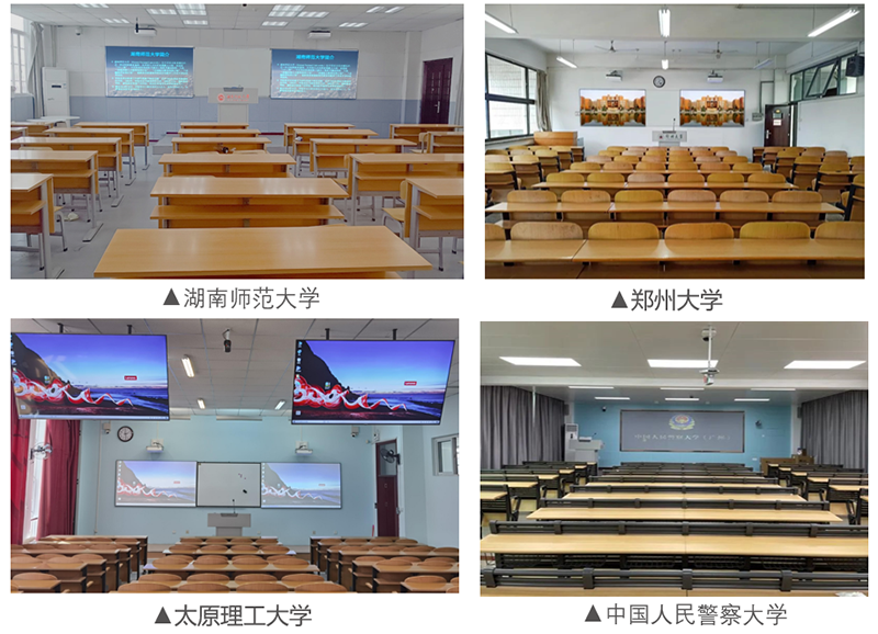 新一代多媒体教室采用双屏设计,完美支持双大屏教学模式,可同屏显示相同教学内容,兼顾左右侧学生观看;也可分屏显示不同教学内容,便于对比讲解,提升课堂教学效果。在双师课堂教学模式下,一屏显示远程“明星教师”的授课画面,另一屏则显示本地辅导教师的板书内容,相互配合将双师课堂的价值发挥到最大。因此双屏教学拓展的不只是视野,更是课堂教学的无限可能。