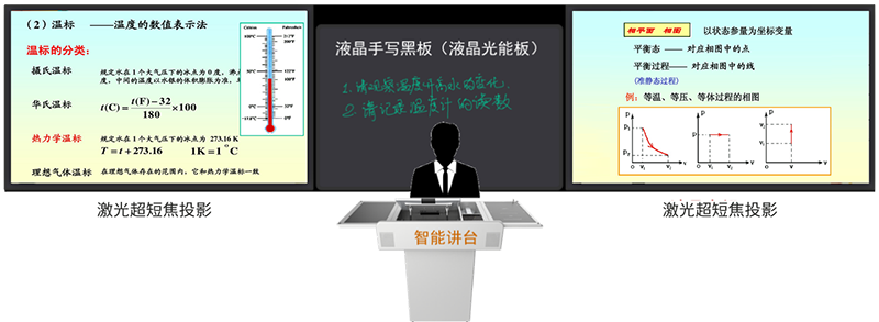 要实现要求的自动控制环境因素(空气清新度、温度、光照、窗帘等),必须实现教室的无尘,搭配可常态化电子板书软件及设备,以液晶光能板或搪瓷白板做补充,替代传统教室的粉笔和油性笔板书,打造“无尘”教室,课堂师生不用再“吃”粉笔灰,是未来教室的主流选择,关注师生健康的同时,也方便有条件的学校装备空调和新风系统,优化教学环境、提升教室品质。