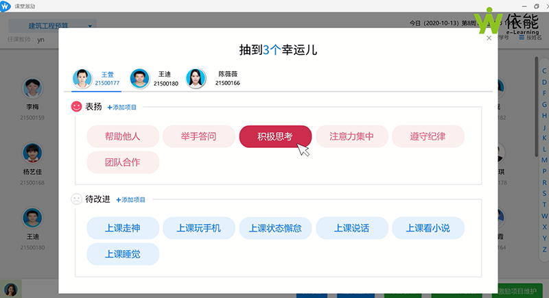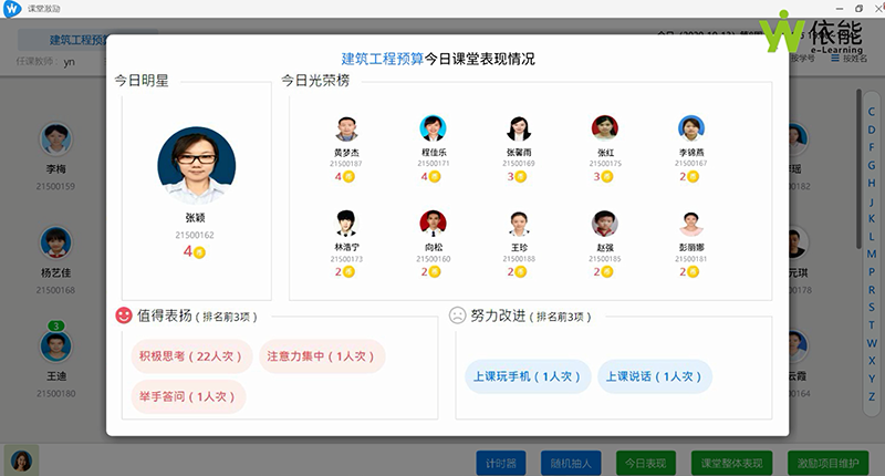 信息化教学的过程性数据非常宝贵,所以教室上课的行为数据、过程性数据,不应该丢失,新一代多媒体教室中使用的授课软件,应与学校的教务教学系统关联,可从教务教学系统获取班级信息、课表信息、学生请假信息、学生实习信息等,授课软件可向教务教学系统回传课堂考勤信息、课堂激励表现情况、课堂作业测验成绩分布情况等数据,形成教学大数据,分析教师教学情况和学生学习情况。