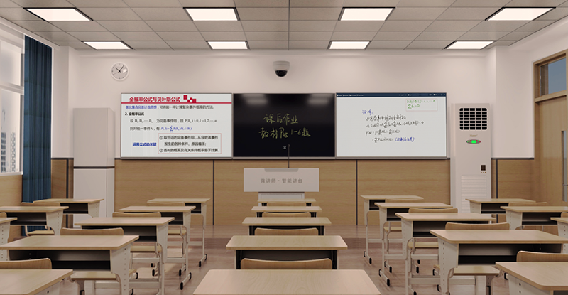 新一代多媒体教室方案以微讲师智能讲台为核心,搭配双大屏显示设备、无尘黑板等组成。解决了传统教室粉尘污染等问题,具备高精度电子板书、无线扩音、随堂录播、互动教学、智能管控等功能,操作简单、维护便捷,真正支撑所有老师开展高质量的信息化教学。