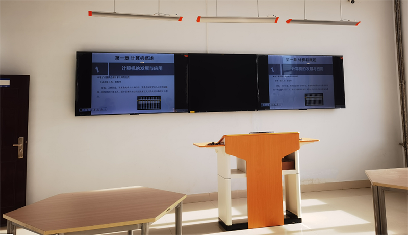 左右两块屏幕显示同样的内容,方便坐在两侧的学生观看,学生再也不用斜着身体去看老师在黑板上写的内容了。也可以一块屏幕显示PPT课件,另一块屏幕用于板书,便于老师对比讲解,方便学生做笔记和对知识内容进行回顾。