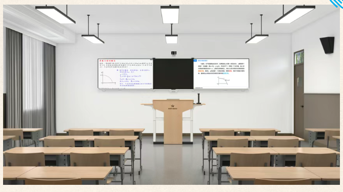 从 90 年代的投影机,到电子白板,再到如今的一体机,智慧教室的形态几经更迭。无论技术如何更新,理想的装备都应助力教师回归C位,配合双大屏幕公平照顾左右两侧学生,面对学生精细化板书,轻声授课,呵护师生健康。