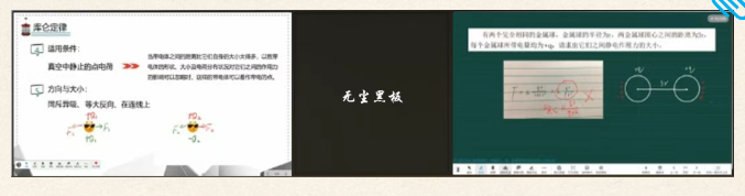③ 一屏播放PPT,一屏对比展示电子黑板板书或实验演示、教学资料等画面。